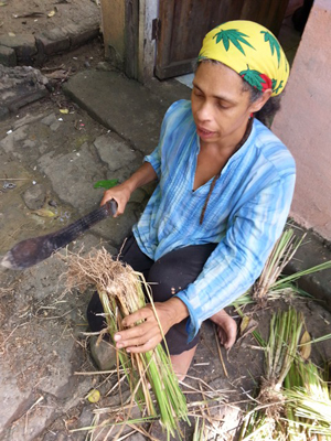 ![]() Clare cutting Vetiver roots |