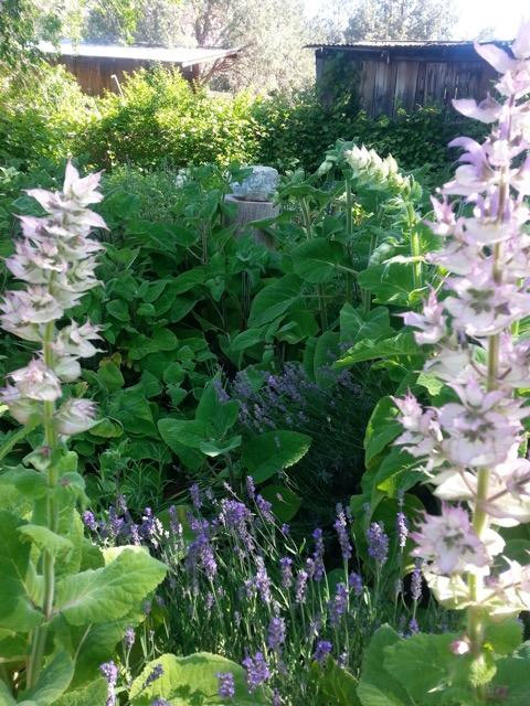 Wild and unkempt, these “cultivated” plants will not be tamed, and they decide when and where to grow. We have given up trying to control them! While we weren’t looking, many other plant friends volunteered and made themselves at home. Clary Sage is the most prominent note, and the summertime aroma of the entire garden is intoxicating!